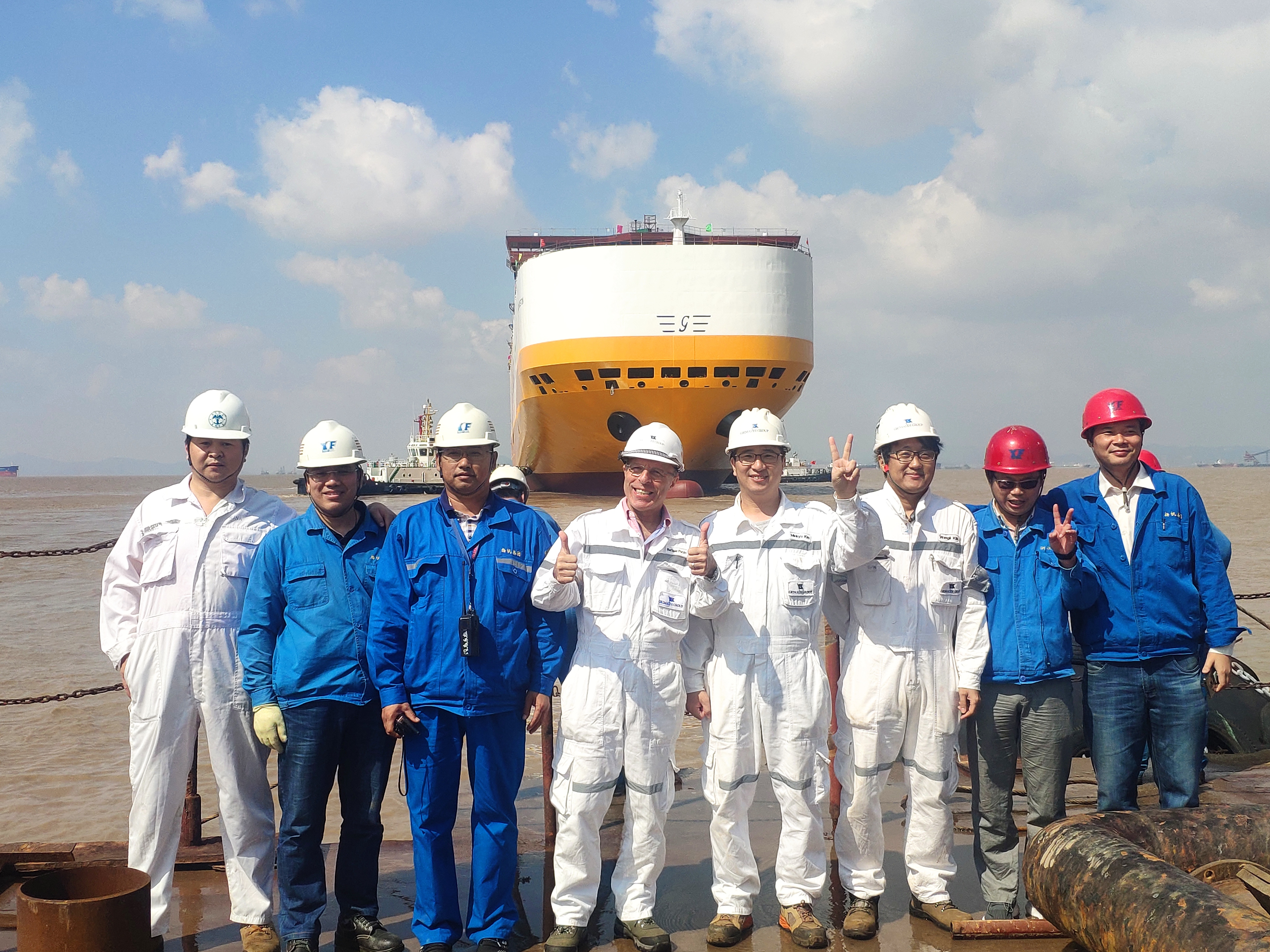 2019年10月19日上午,揚帆集團(tuán)下屬浙江東海岸船業(yè)有限公司一艘7800PCTC系列汽車滾裝船順利下水,出塢狀態(tài)完整性超越已交付的兩艘系列船。