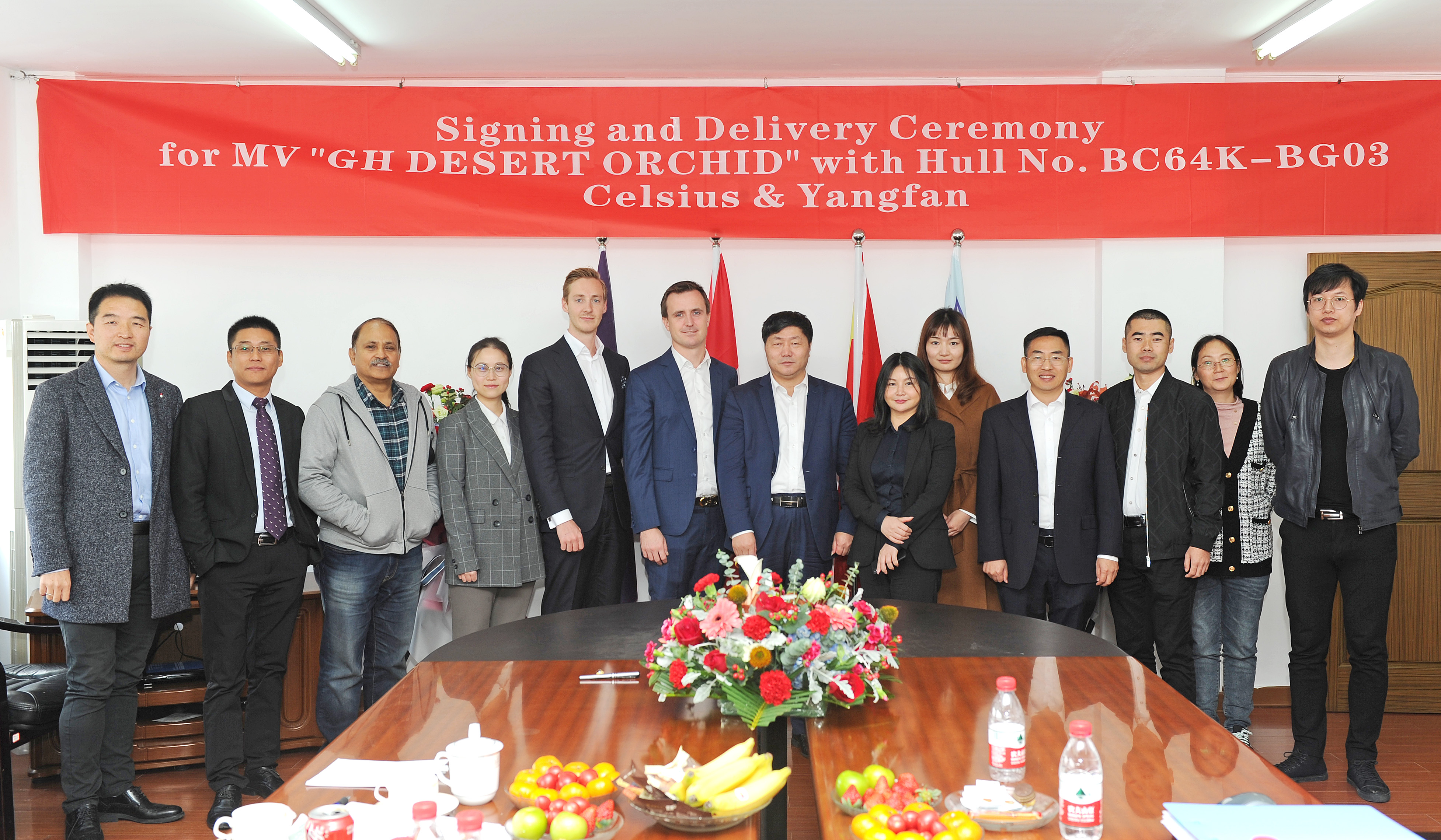 2019年11月19日,揚(yáng)帆集團(tuán)下屬舟山大神洲造船有限公司建造的一艘64000噸系列散貨船正式簽字交付。