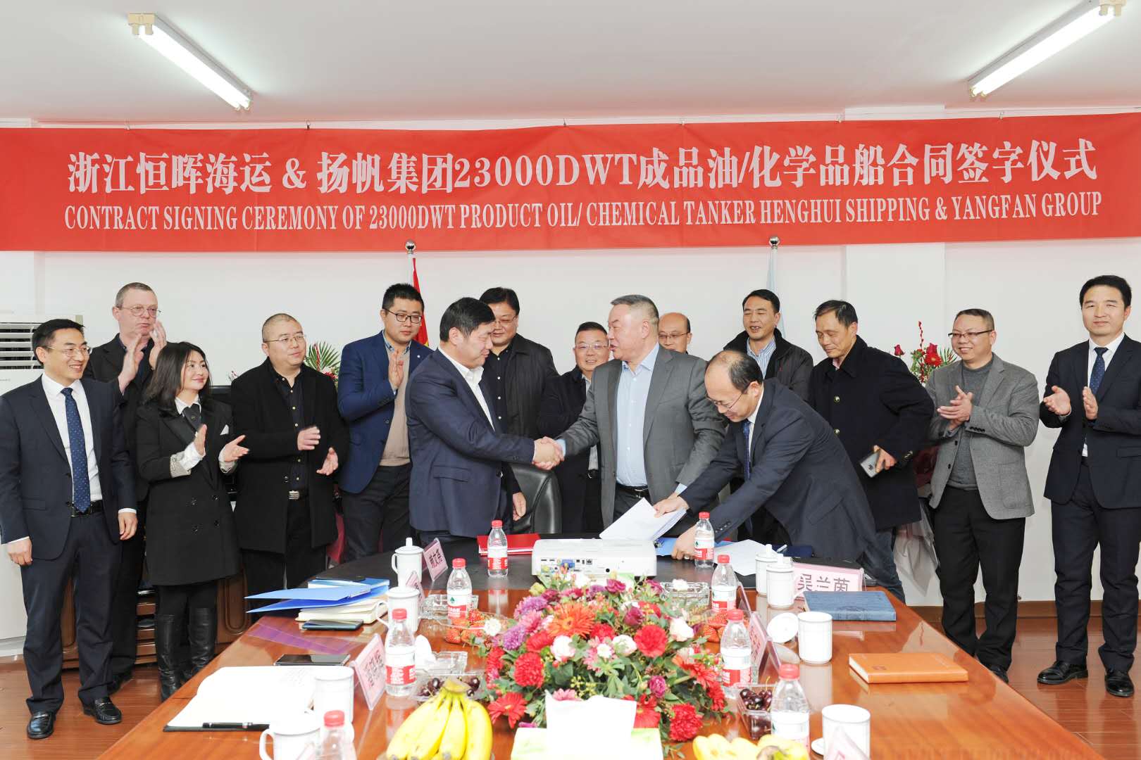2020年1月1日,揚(yáng)帆集團(tuán)與國內(nèi)一船東簽署了一艘23,000噸級成品油兼化學(xué)品船建造合同。該船型總長159.20米,型寬24.80米,型深13.85米,結(jié)構(gòu)吃水9.80米,最大23,000載重噸,液貨艙艙容達(dá)27,000立方米。該船可裝載輕汽油、柴油、2類化學(xué)品等貨品。該項目的簽署為揚(yáng)帆2020年的市場開拓注入了信心。